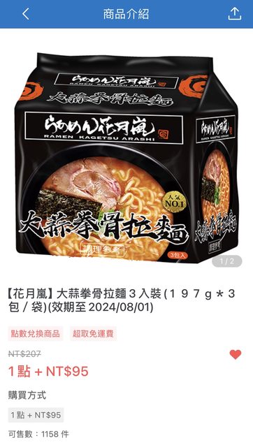 ※ 引述《OrzxzrO (OrzxzrO)》之銘言: : 全家行動購【花月嵐】大蒜拳骨拉麵3入裝,即期特價95元 : https://i.imgur.com/tPFxCqo.jpeg