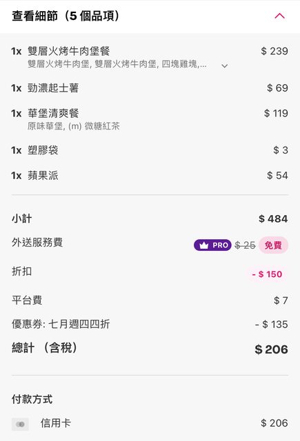 推 color345: 我沒有pro,買三份辣華堡餐+塑袋,250還可 101.12.93.149 07/04 19:36