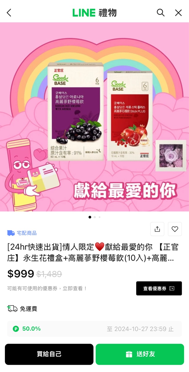 → enigmabp: line禮物的東西都貴很多,20%回饋也不夠 36.233.194.93 10/25 14:19