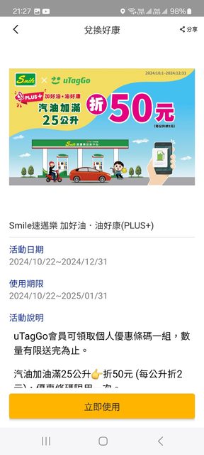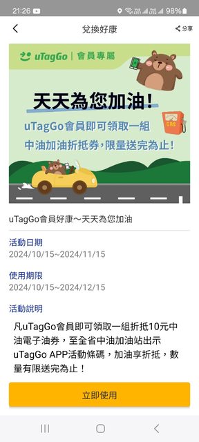 標題Re: [情報] uTagGo 會員領取中油10元折抵券