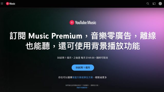 標題[情報] Youtube Music Premium 免費試用 1 個月