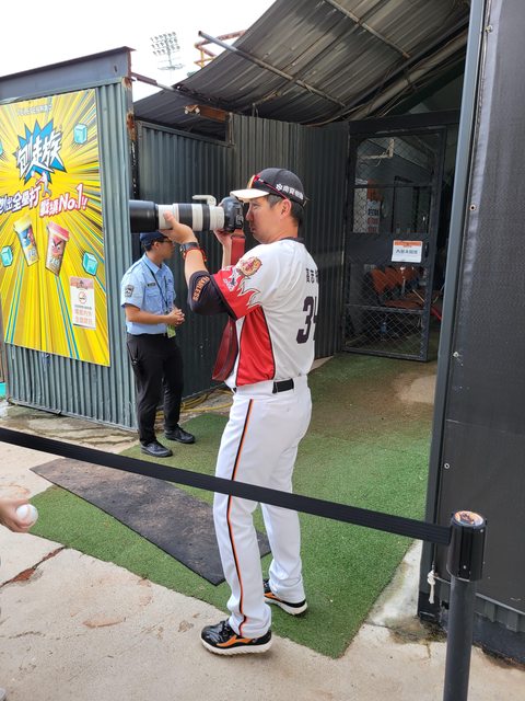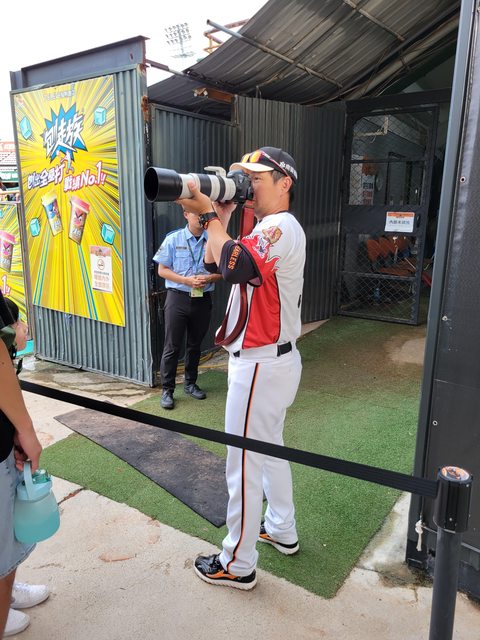 在等待球員進來練打前
