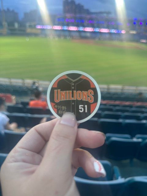 接著移動到左外野,今天的貼紙是金龍師