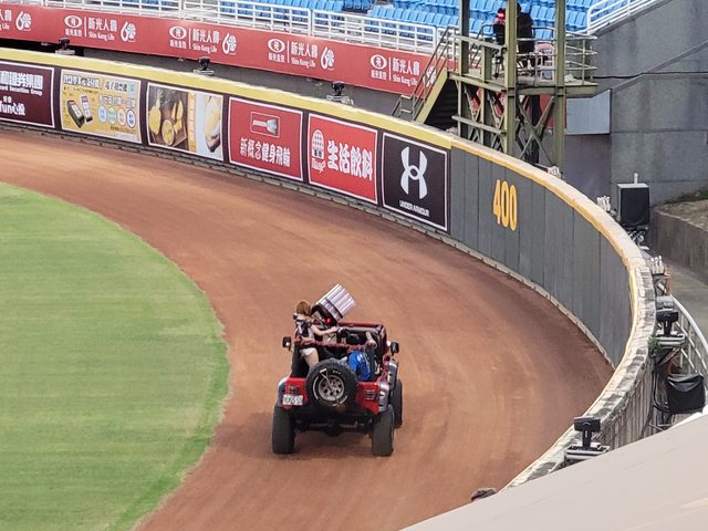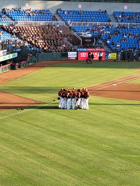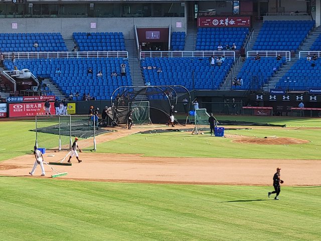 很早就進到球場 當時球隊正在練打