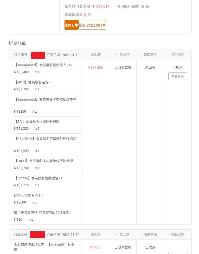 獅卡會員享會員商品專屬價最高現省64折 #會員球衣現折900