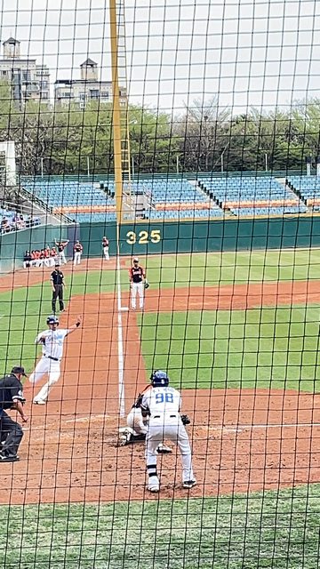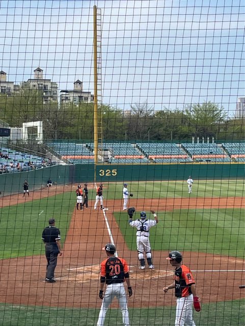 原本想坐三壘 但考慮到女孩們沒來加上我的球衣還在路上所以忍痛(?)坐一壘