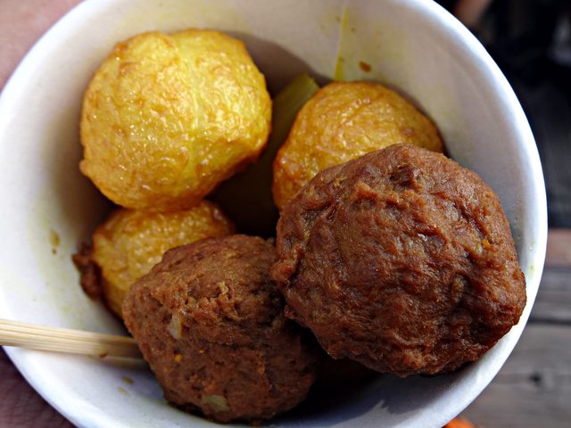今天買主題日在賣的咖哩魚蛋買完後才發現他還有牛丸..可是我不能吃牛= =