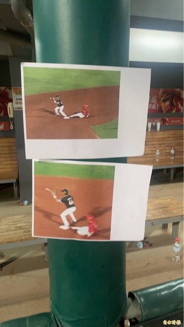站在一壘側欄杆邊對著下方正準備練打的PJK、妖晏等人