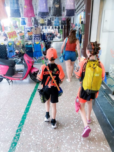 到球場後先去對面7-11買啤酒, 回球場路上遇到守備教練的家人.