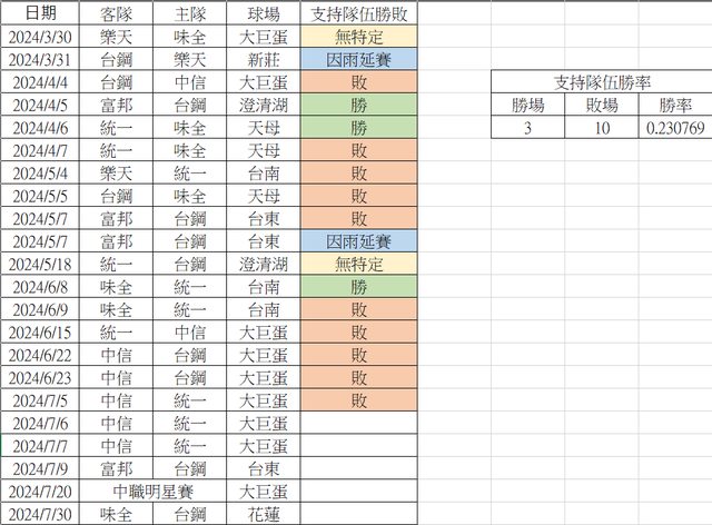 今年的現場進場支持隊伍勝率有點慘啊