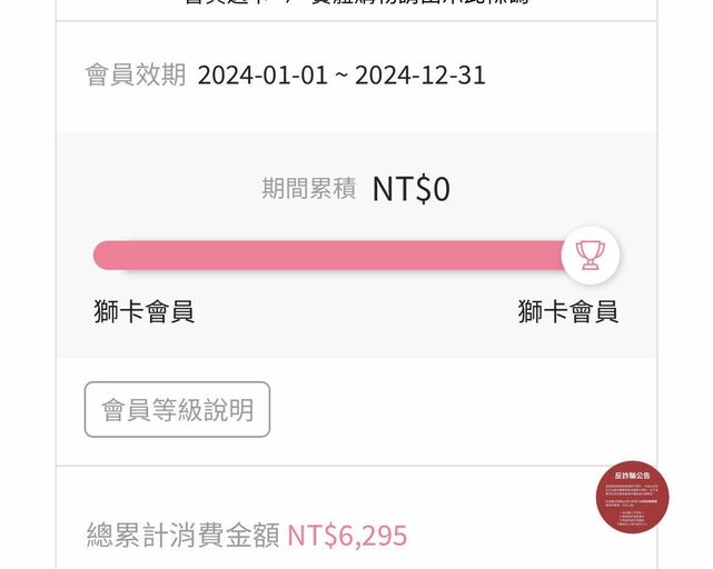 雖然會員等級已經顯示獅卡會員