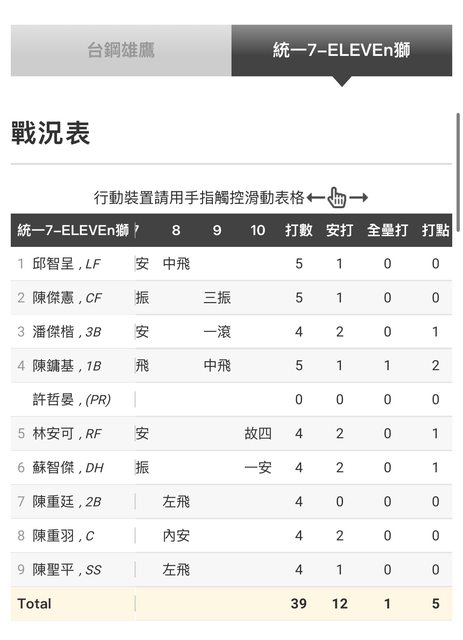 分享這小資訊給板上關注統一獅的大家