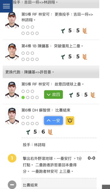 今天去官網看果然就看到改判再見安打了