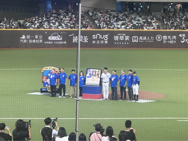嘟嘟好朋友阿福開球。嘟福才是 cpBL 鼻祖