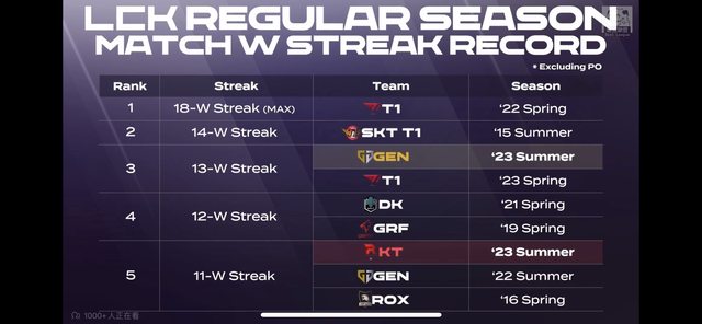 以及23夏的KT、22夏的GEN與16春的ROX 11連勝)