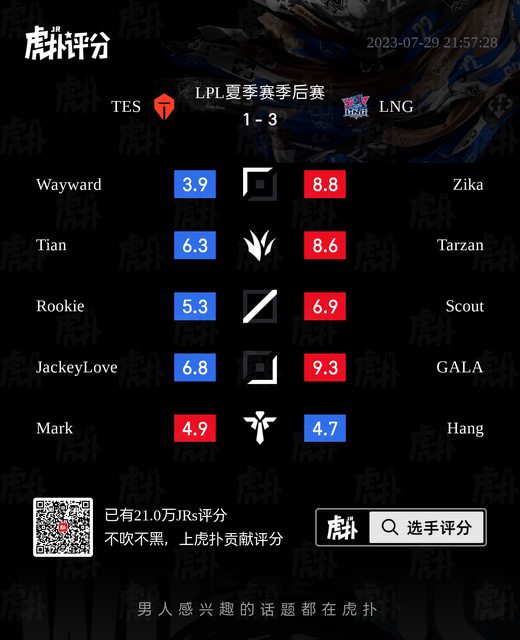 標題[閒聊] TES vs LNG 虎撲賽後評分表