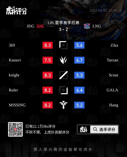 標題[閒聊] JDG vs LNG 虎撲賽後評分表
