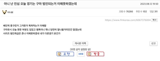 推 GenjiEd : guma黑好多喔 oner這系列賽我覺得最誇張..沒什麼罵 08/13 00:05