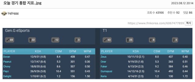 → NIEN1EN1997 : 只看這篇還以為T1被3-0,韓網真的低能,尤其是最後 08/13 01:00