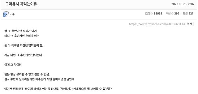 → Tornadola : 但也難講,我覺得一樣gg的隊友 可能effort上去也行 08/20 22:25