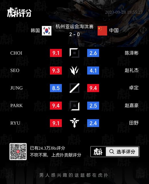 標題[閒聊] 南韓vs中國/中華台北vs越南 虎撲賽後評分