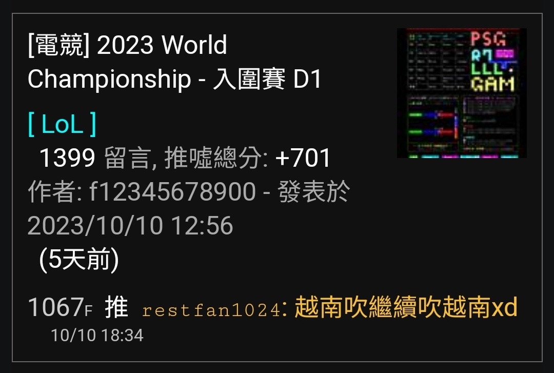 → a3221715 : 亞運確實滿屌的啊 但不甘PCS強弱 上路兩個也是前LMS 10/15 14:31