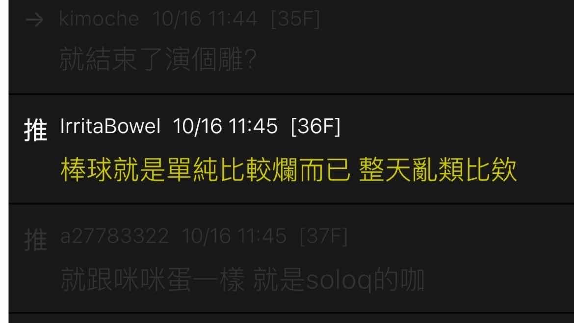 → IrritaBowel : 根本不同 我原推文說棒球的情況就是「單純比較爛」 10/16 13:14