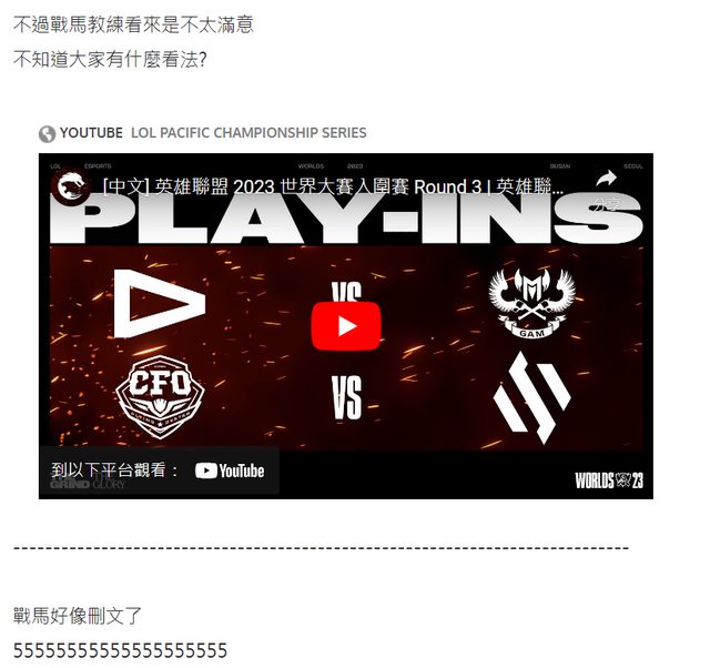 噓 c871111116 : 洗文仔沒看半場LOL找不到文洗只好去遊戲大亂鬥找啦? 10/20 21:27