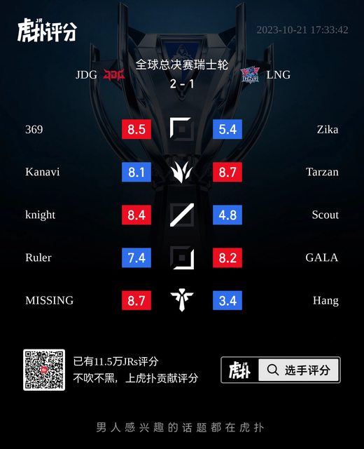 標題[閒聊] JDG vs LNG 虎撲賽後評分表