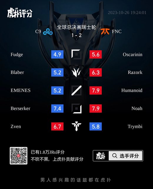 標題[閒聊] C9 vs FNC 虎撲賽後評分表