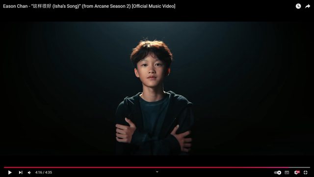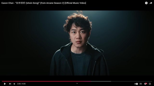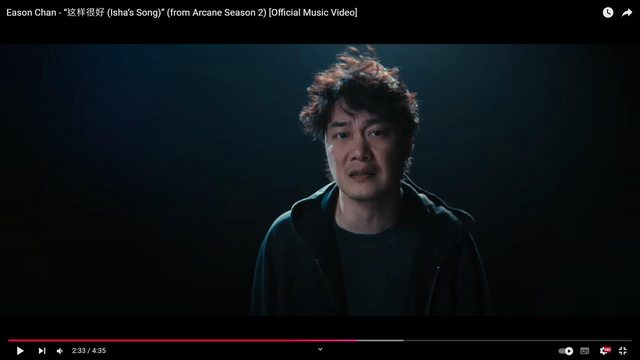 : 應該是剛剛中午陳奕迅剛發的,奧術第二季的中文主題曲,樓下覺得跟孤勇者比起來咧