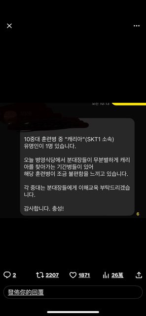 推 kahocawa : Bengi之前也說當兵會一直被問FAKER的問題 11/20 16:01