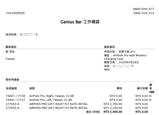 2022九月有到直營更換左右耳機