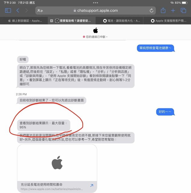 電池健康度95%,已完整清潔