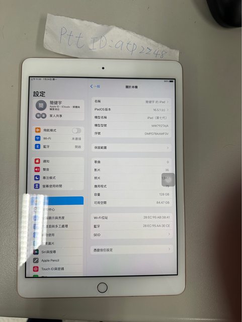 標題[販售] ipad 7 128g Wi-Fi 金色