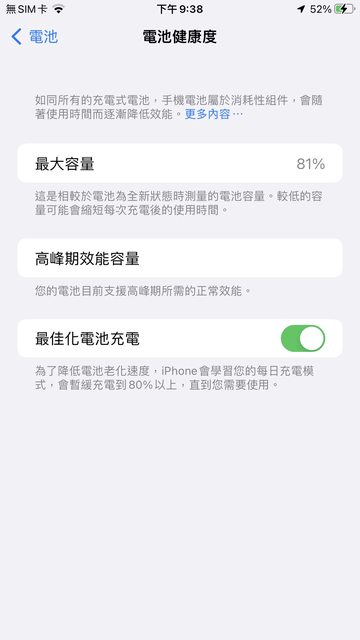 電池健康度81%(2020/11換過原廠電池)。