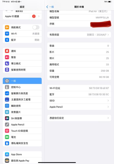 [規格] iPad Air 5 256g 跟Apple Pencil 2