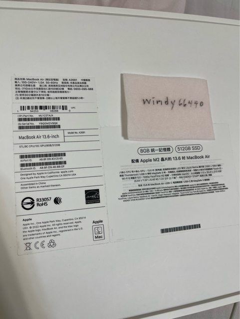 標題[販售] 雙北 M2 Macbook air 8/512 星光色
