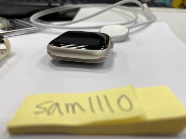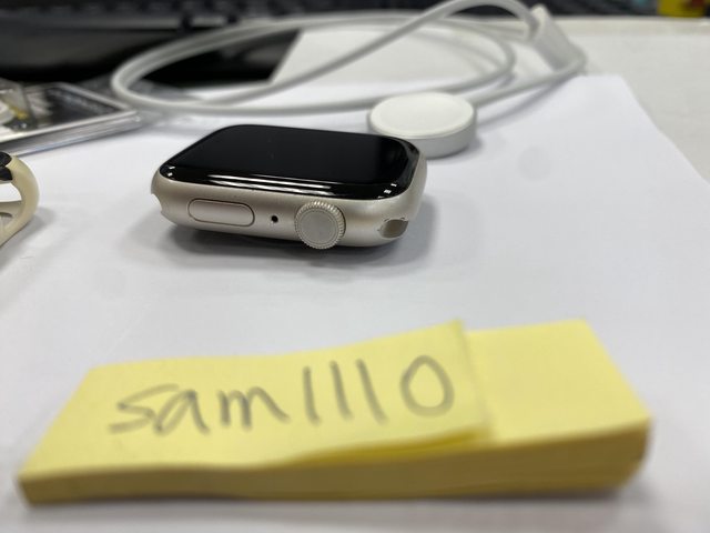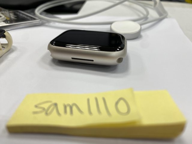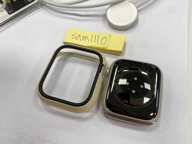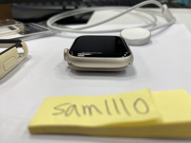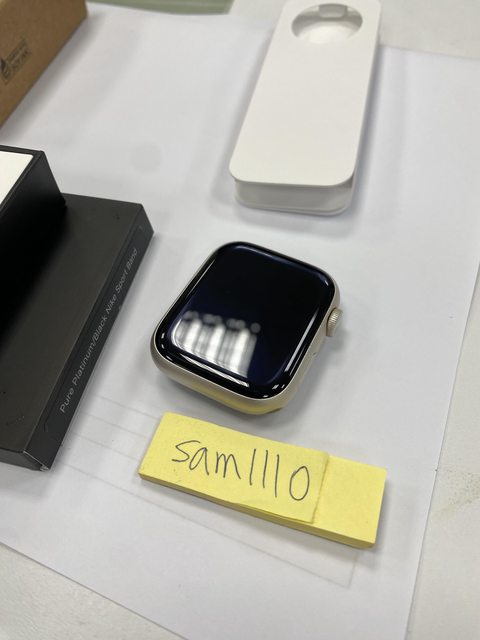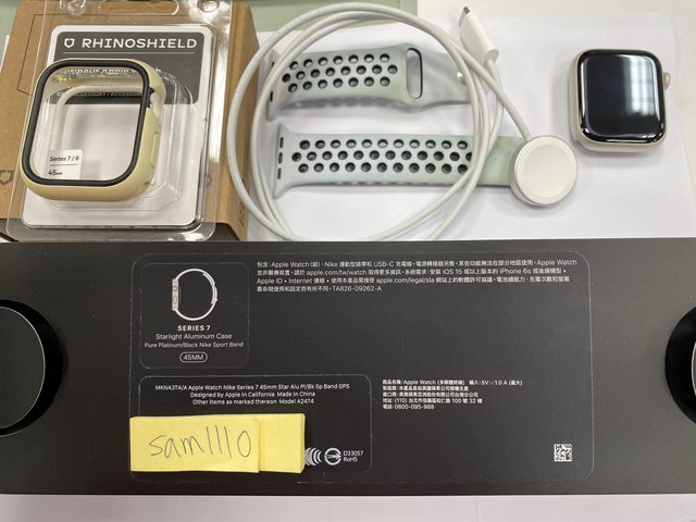 [型號] Apple Watch Nike S7 GPS 45mm 鋁 星光色 [規格] MKNA3TA/A A2474 [保固] 2021.11.04神腦購入,已過保 [盒裝配件] 完整盒裝,原廠配件齊全,說明書、充電線等都有 另附上犀牛盾保護殼 [售價] 6,500元整含店到店(開賣貨便) [交易方式/地點] 面交可在中壢後站的7-11,其餘可開賣貨便 [連絡方式] 站內信 [商品照/補充說明] 所有功能正常,電池健康度88%,洗澡、玩水、游泳都不會配戴 邊框有些微刮痕,錶帶有染色髒污,請參考照片