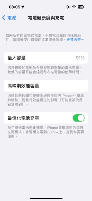 電池健康度 91%