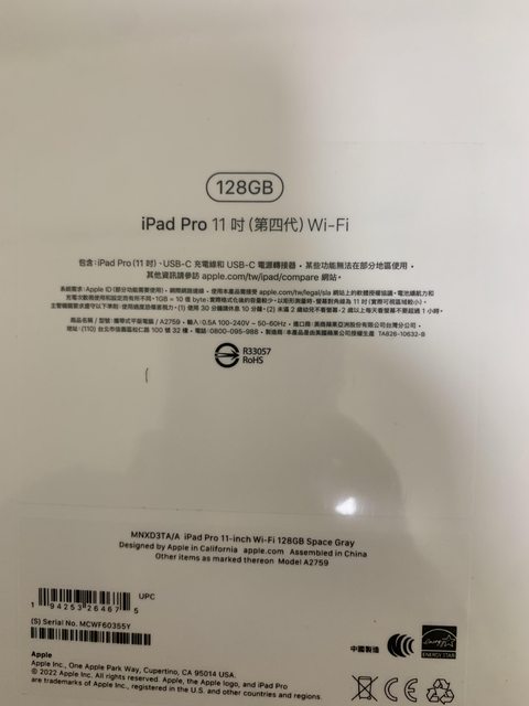 標題[販售] 嘉義 iPad Pro 11吋 128G Wi-Fi 2022(太空灰)售出