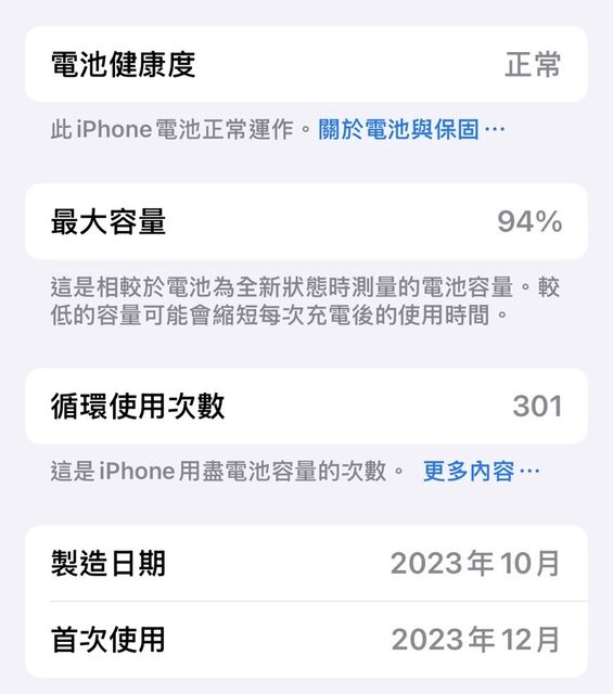 - 電池健康度94%