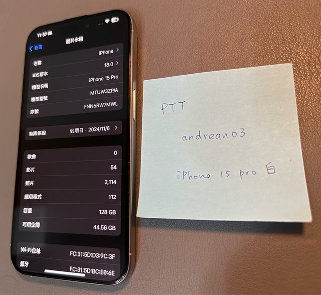標題[販售] 台北 iphone 15 pro 128GB 白