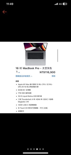 Apple MacBook Pro 16吋M1 max