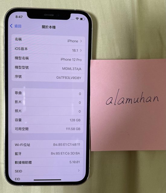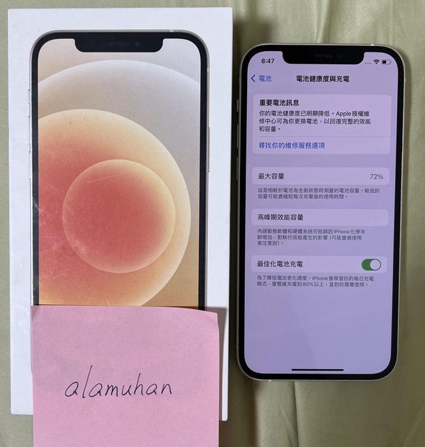 1. iphone 12 128G 白色;正常使用痕跡,無維修,電池健康度72%。