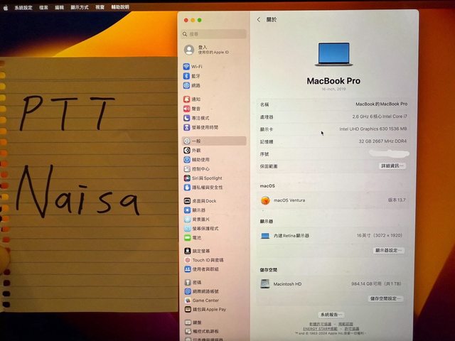 [型號] MacBoo Pro 16英吋 2019年