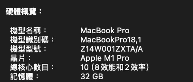 [型號] MacBook Pro 16吋 2021年底 M1 Pro