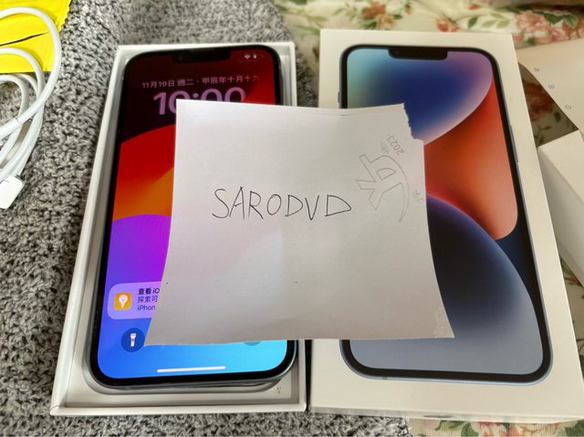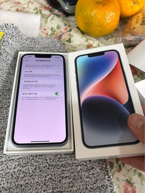 [型號] iPhone 14 [規格] 藍色128g [保固]過保 [盒裝配件] 盒裝在 線材未使用 配件就插針 和一些文件貼紙 另外送一堆全新保護殼和保護貼 [售價] 11000 [交易方式/地點] 三重蘆洲自取 [連絡方式] 站內信 [商品照/補充說明] 有兩處撞傷 其餘良好 電池83%