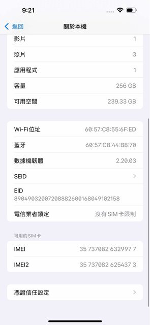 外觀近全新無傷,拿到新機的時候就有包膜、保護貼、鏡頭貼加軍規手機殼保護著。膜因 要拍照已拆,外殼因為透明殼泛黃所以沒有附贈,鏡頭貼完好,有2片全新的防窺保護貼 會附贈。 電池健康度91%,循環236。如圖有附上實體拍攝機身,以及購買證明資料供參考。