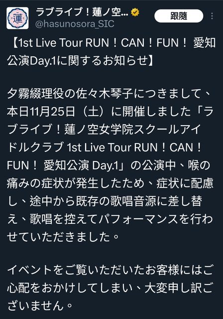 LIVE到一半喉嚨痛唱不出來所以改播音源